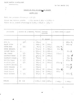 Remise en état du canal de Bramus - année 1982 total des journée d'arrosage