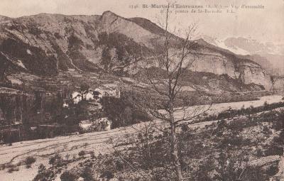 2. St Martin d'Entraunes (A.M.) alt. 1050 m. Vue générale, au fond le Col de la Cayolle