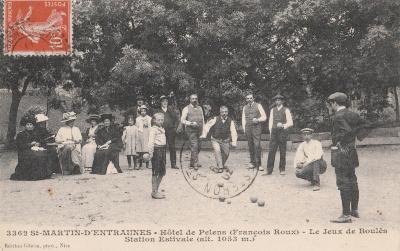 3362 - St Martin d'Entraunes. Hôtel de Pelens : François Roux -Le jeux (sic) de boules. Station estivale (alt.1053m)
