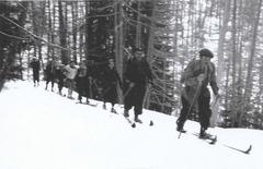 Beuil (A.-M.) Arrivée d'un concours de ski au refuge du Mont Mounier (alt. 2818 m)