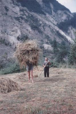 Puget-Rostang -Ramassage du foin , jardin du Perrou, Pierre Maurin et un inconnu