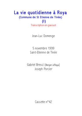 La vie quotidienne à Roya - commune de St Etienne de Tinée (I) - TRANSCRIPTION Cassette n°42 (Partie 1 et 2)