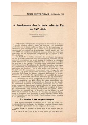 La Transhumance dans la haute vallée du Var au XVIe siècle - documents dialectaux
