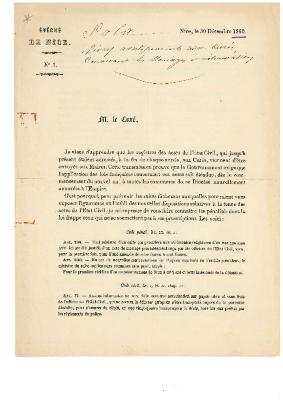 Divers avertissements aux curés, concernant les mariages et inhumations. Nice, le 30 Décembre 1860