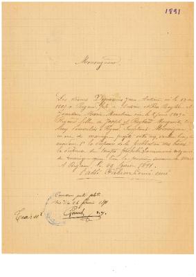 [Demande de dispense de mariage à l'évêque de Nice pour Basile-Tranquille Champossin et Anastasie-Louis Champossin] 1890