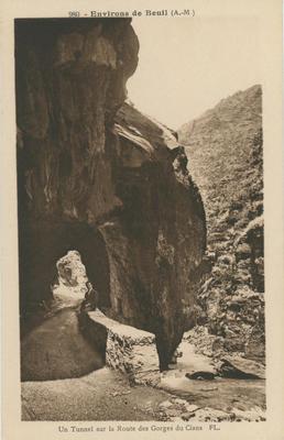 987. - Environs de Beuil (A.-M.) - Les sombres passages de la route des Gorges du Cians