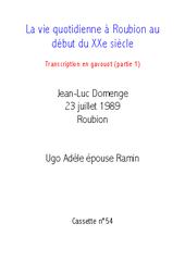 La vie quotidienne à Roubion au début du XXe siècle (I)- TRANSCRIPTION de la cassette n° 54 (1ère partie)