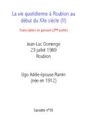 La vie quotidienne à Roubion au début du XXe siècle (II) - TRANSCRIPTION de la cassette n° 55 (2ème partie)