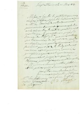 [Lettre à monsieur Lauvens recteur à Rigaud le 30/03/1819]