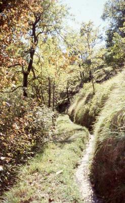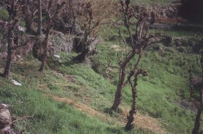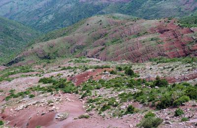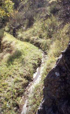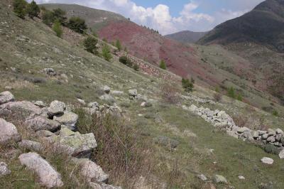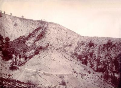 Versant raviné au canton de l'Espinasse et de la Jacquette dans les marnes oxfordiennes et les terrains crétacés au pied de la crête de l'Aurafort et formant la grande berge du torrent de Rivet