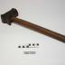 Description : Outil composé d'un manche en bois de section elliptique et une tête en acier en forme de pyramide tronquée, aux arêtes biseautées. La partie avant est creusée d'un large évidement dont les rebords sup. et inf.sont perpendiculaires à la longueur du manche. Partie arrière : surface de frappe circulaire.
