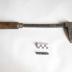 Description : Panne de cuivre rouge bisautée sertie perpendiculairement à une tige de fer se terminant par un manche en bois à virole.