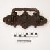Description : Plaque de fonte avec arabesque au centre tête de mort et tibia croisé. Poignée en fonte sur pivot.