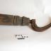 Description : Instrument composé de : - un pilon en bois tourné et ouvragé (évoquant l'aspect d'une quille de jeu) - un pied en fonte nervurée sur les côtés, affectant la forme d'un "col de cygne" supportant, dans sa partie sup., un plan de travail triangulaire, mais ayant plutôt la forme d'un écusson.