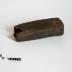 Description : Pièce de bois monoxyle rectangle au angles arrondis, évidée, avec un crochet de ceinture taillé dans la masse.