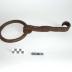 Description : Cercle en fer forgé arrondi sur lequel est fixé un crochet plat torsadé en son milieu terminé en boucle Lg 22,5 cm lg 2,8 cm Ep 0,8 cm D int du cercle 11,5 cm et diam ext 1é,5 cm