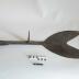 Outil composé de a): un manchon conique, ouvert aux 2 extrémités (L : 13 cm, D maxi : 4,4 cm, mini : 3 cm) présentant un petit trou latéral (D : 0,5 cm) pour un clou de fixation ; b) : une tige prolongeant ce manchon (L : 21,5 cm, Lg : 2,3 cm, E : 1,3 cm) à laquelle est soudée, perpendiculairement, une autre tige (L : 10,3 cm, Lg : 2,3 cm, E maxi : 1,5 cm) et c): une lame dont la forme évoque celle de la queue d'une baleine : une demi ellipse dont la partie rectiligne est la base d'un triangle de vide (rentrant donc dans sa pointe en direction du manchon), les2 autres côtés formant la partie tranchante de cette lame.