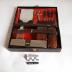 Description : Boîte parallélipèdique comportant deux casiers dont l'un sert de couvercle pivotant sur le côté le plus long. Le casier du fond contient deux brosses, une boîte avec une brosse à dents, un flacon, le tout retenu par des brides. Le couvercle contient une glace, une paire de ciseaux, quatre petits instruments de manicure. Couvercle et fond sont maintenus fermés par un fermoir sans serrures. A l'extérieur sur le dessus du couvercle, trois liserées vert, bleu, orange assurent la décoration.