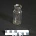 Description : Récipient sur plan circulaire à bords bas et droits, goulot large court avec un renflement.