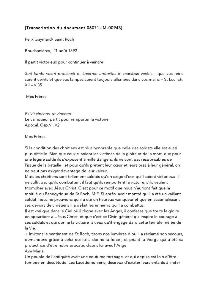 [Saint-Roch - Homélie à Bouchanières - 21 août 1892] [TRANSCRIPTION LITTERALE]