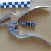 Les deux branches de la pince comportent une tige striée à l'intérieur sur 6 cm qui forme la partie active et une autre tige courbe et lisse qui sert à actionner la pince.