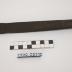 Description : Tige de métal sur plan rectangulaire. La partie sup. du corps, immédiatement sous la tête, est légèrement moins longue et épaisse que le reste du corps (2 x 0,9 cm). Tête ébréchée 2,3 x 1,8 cm ; corps 2,4 x 1 cm. Partie inf : L 3,4 cm, Lg 2,8 cm, ép maxi 1cm mini 0,1 cm. Le corps est finement strié en résille sur une longueur de 16,8 cm.